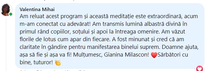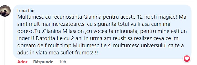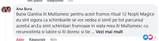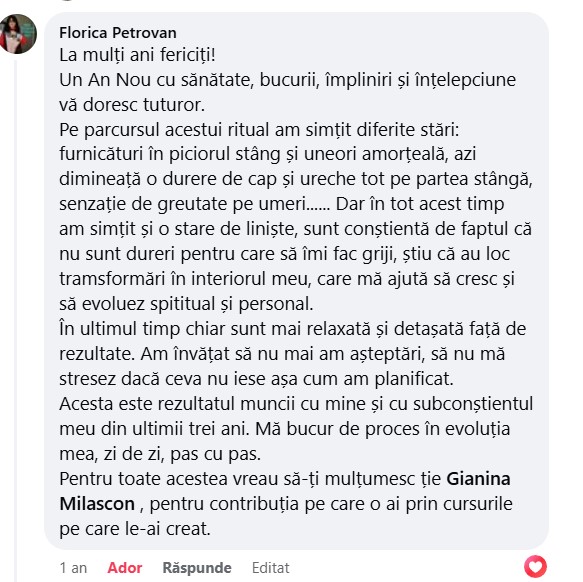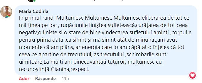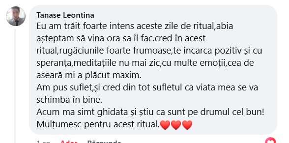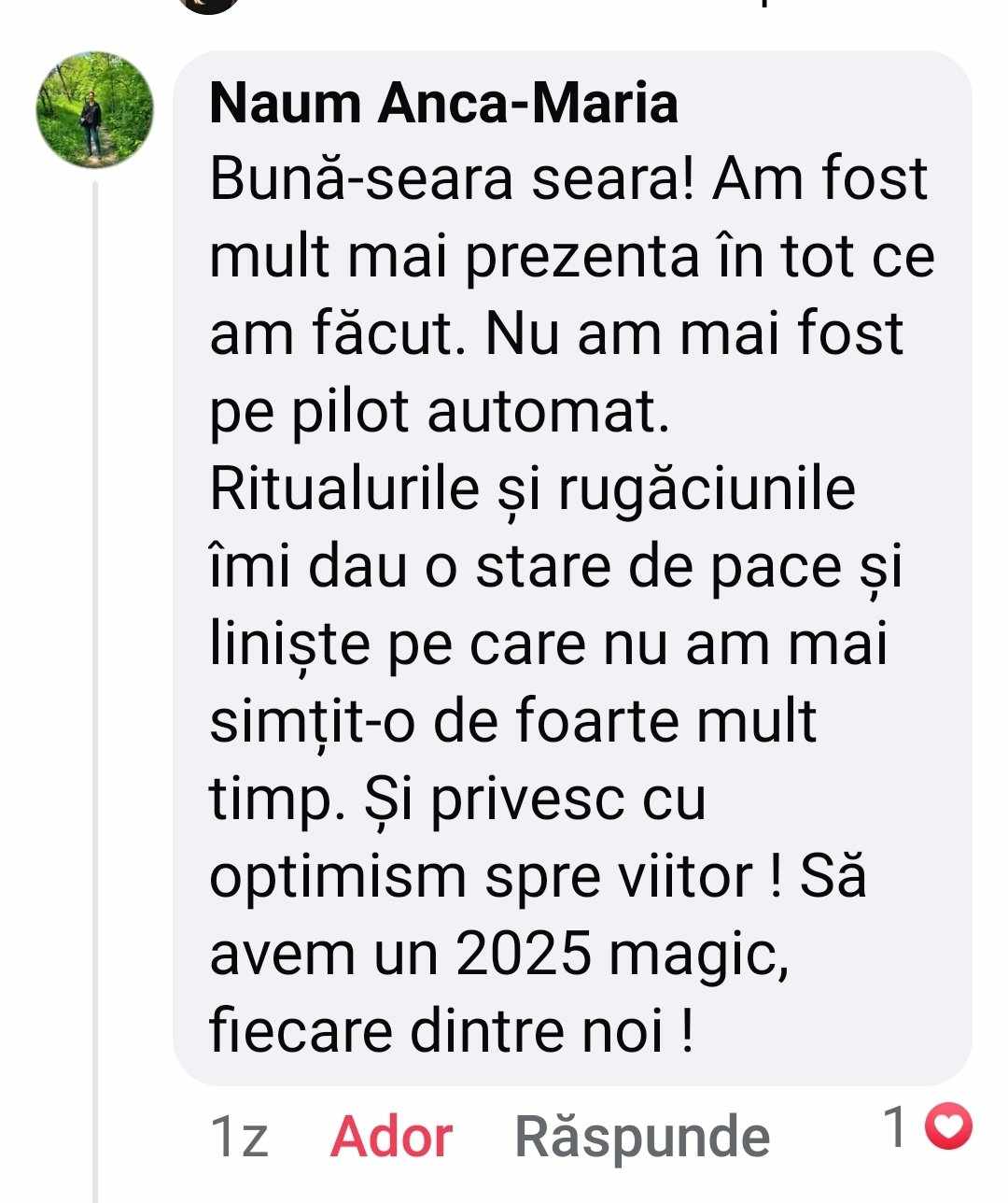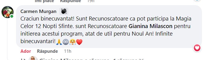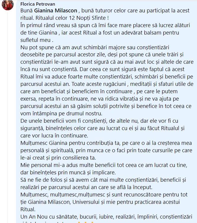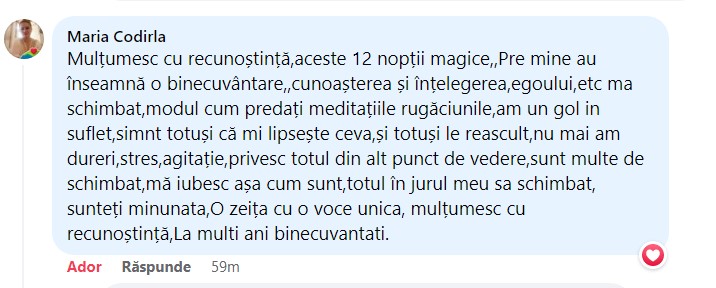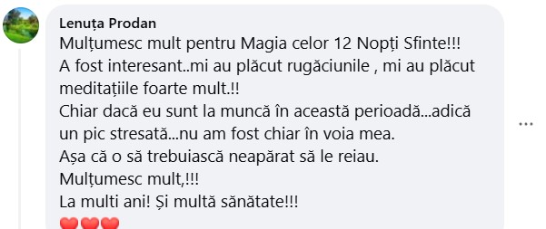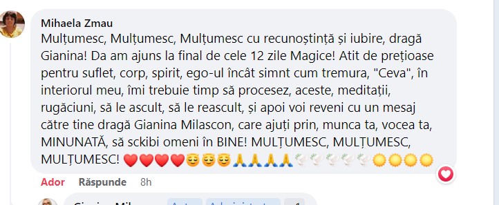 Mai jos vei găsi câteva dintre mesajele reale primite de la participantele din anii trecuți - mesaje scrise din inimă, după ce au trăit pe pielea lor puterea acestor 12 zile sacre.